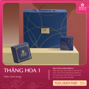 Nhân bánh: Thập cẩm, Custard, Sen trà xanh, Mơ tây, Đậu đỏ, Nam việt quất, Hạt sen trứng muối, Mè đen óc chó, Hạt dẻ