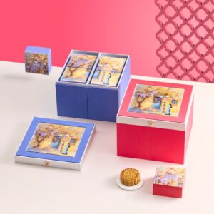 Nhân bánh: Thập cẩm, Sen trà xanh, Mơ tây, Đậu đỏ, Nam việt quất, Hạt sen trứng muối, Mè đen óc chó, Hạt dẻ